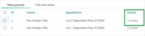 - The New parcels panel has two tabs: New parcels and Title allocation.