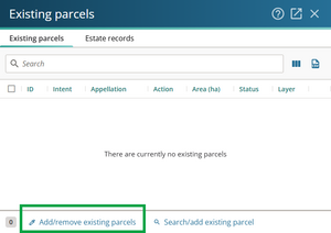 Open the Existing Parcels panel and select Add/remove existing parcels.