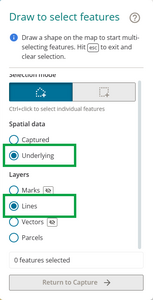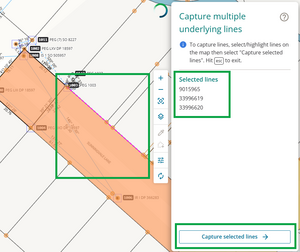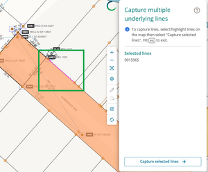 Alternatively, select Capture multiple lines to add more than one line at a time. The selected line changes to a dashed pink line, and the Capture multiple underlying lines panel opens.
