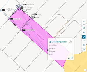 Select the underlying parcel. The parcel changes to pink when selected, and an Underlying parcel pop-up box appears.