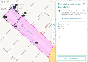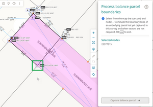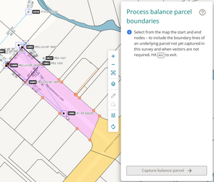 The balance parcel process is used during survey capture to deal with the balance of a parcel that does not need to be dimensioned but must be created to keep the database topology correct. In this case the vectors don't need to be captured.