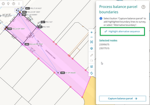 Select the start node for the remaining parcel boundary you want to capture. The node turns pink as you select it.