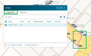 You may also see lines in the Irregular lines tab, depending on how they were originally captured in Landonline.