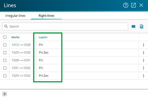 - Open the Lines panel and select all Irregular and Right lines. They will highlight in the spatial screen.