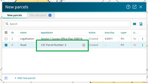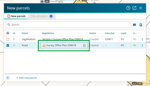 Open the Appellation panel by double-clicking in the Appellation field for the new parcel.