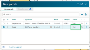 The Layer is automatically set to Primary for parcel intent Road or Railway.