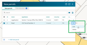 Left-click the 3 dots at the end of the row. Select Link to link the parcel.