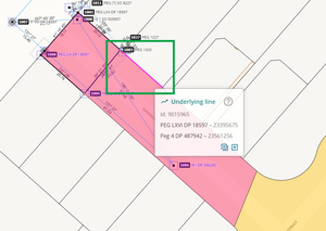 Left-click on a line around the parcel to select it. The line changes to pink when selected, and an Underlying line pop-up box appears.
