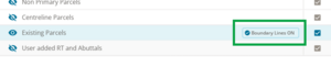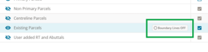 The box will change to Boundary Lines OFF. You can left-click again to turn the existing parcel boundary lines back on.