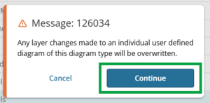 For Maintain diagram layers by Diagram type, when you select Save, a message will appear advising that any changes made will overwrite the Individual user defined diagrams if you continue. Select Continue to save your changes.