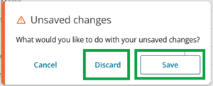 If you have made changes to any diagram layers and try to shift away to a different diagram type or individual user defined diagram before saving, a pop-up box will appear warning you about unsaved changes. Select Save to save or Discard to continue without saving.
