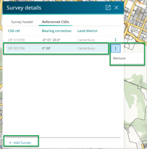 To add a CSD reference, select the + Add Survey button at the bottom of the panel. A new Referenced CSD row will appear.