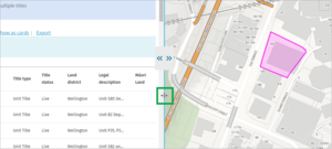 Landonline briefly displays a message saying Processing export request in the top right corner of the screen.