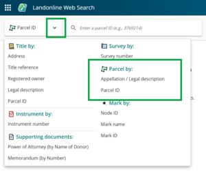 Tick Part if the appellation is part of a block, section, or lot. Leaving this unticked will search both part and whole appellations. Alternatively, you can enter Part into the Appellation field.