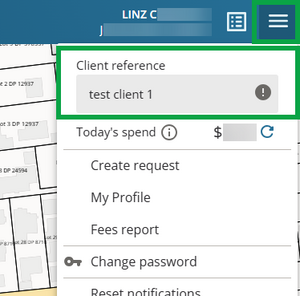 1. Today’s spend for the current client reference is shown below the client reference. Select the Refresh icon to refresh the current fees.