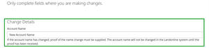 If you need to change your firm's Landonline account name, enter the new name into the Account Name field.