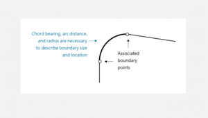 An arc boundary may be used to define the horizontal extent of a primary or non-primary parcel boundary but not the vertical extent (r 38 and r 46).