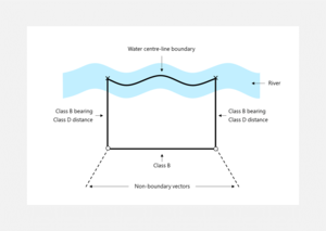 - the distance of the right-line boundary must match the accuracy of the irregular or water centre-line boundary as determined under rule 29(2), and must be class D (r 30(b)).