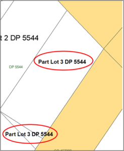 The first step is to identify the part parcels that comprise the land under survey. For example, Figure 2 below shows two parcels with the appellation Part Lot 3 DP 5544 (circled in red).