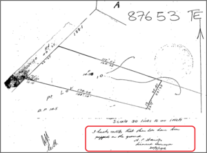 Figure 8 below shows a diagram on transfer with a note from the Licenced Surveyor certifying that the boundaries have been ground marked. Despite this certification, the diagram does not show any survey work to support the definition of these boundaries.