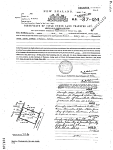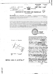RT HB69/128, a fee simple title, was issued for Lot 66 DP 2615 in Latham Street, Napier in 1916.