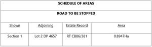 - extinguish the existing road parcel in Landonline that is affected by the road stopping (Lodgement standard 4.3)