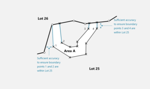As illustrated in Figure 8 below, non-primary boundary points 1, 2, 3 and 4 must be within, or coinciding with, the boundaries of Lot 25. They are not permitted to overlap into Lot 26.