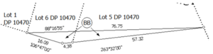 Figure 1: Easement BB crosses the primary parcel boundary between Lots 5 and 6 DP 10470 which are held in the same record of title