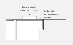Where the permanent structure boundary coincides with the underlying primary parcel boundary, the relationship of the physical structure to the boundary must be clearly depicted, particularly where the structure extends beyond the boundary (r 101, r 107).