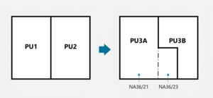 Diagram 1 - Land from PU2 being added to PU1 (plan view)