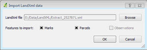 Depending on the options you selected, the LandXML_parcels and/or LandXML_marks and/or LandXML_observations layers will be added to the map project. You can then style the layers using QGIS's layer properties dialog.