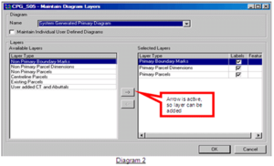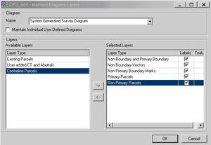 In the Maintain Diagram Layers screen, add the following layers to the System Generated Survey Diagram or any User Defined Survey Diagram.