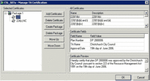 • the generated Territorial Authority Certificate document for the package shows in the Supporting documents list