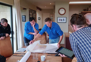 Minaret Station lessee Jonathan Wallis shows a map of the property to members of the pastoral team.