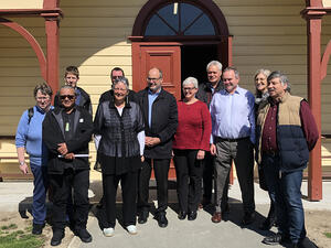 The agency chief executives with the rūnanga chairs and leaders outside Te Hapa o Niu Tīreni.