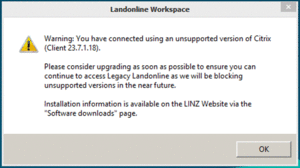 From late last year, Legacy Landonline users received a warning message during login if they were using an older version of Citrix.
