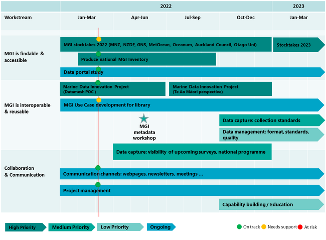 The NZMGI work programme consists of prioritised projects, each contributing towards the goals of the working group.