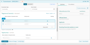 - Once the new title has been issued, prepare a standard transfer of that title in a dealing using either Simple or Complex mode to complete the transfer.