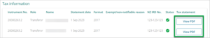 Select the View all PDFs button, a drop-down menu will appear and then select Full or Short form to open a new browser tab with the complied tax statements PDF.