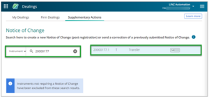 Landonline will now alert you to duplicate instrument numbers when you use Change due to pending dealing to manually add an affected instrument number to a: